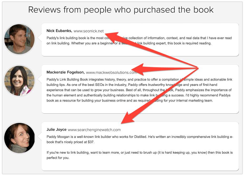 Gør det til en god en, og de kan endda fremhæve din på forsiden, hvilket gør linket endnu mere værdifuldt. Du kan sende testimonials eller efterlade anmeldelser for de e-bøger, du har købt, eller de podcasts, du lytter til.