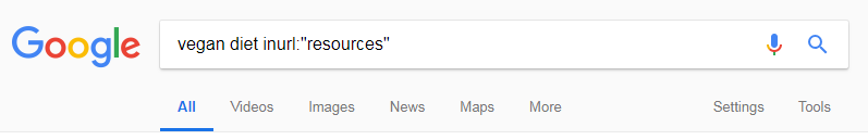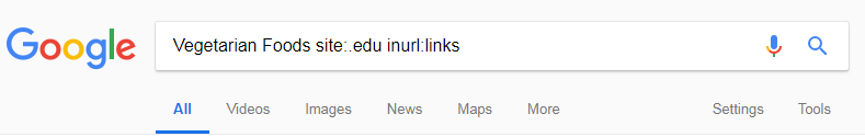 Det er tid til at bruge de søgestrenge igen. Lad os sige, at jeg søgte efter nøgleordet "vegetariske fødevarer" ved hjælp af en af de strenge.