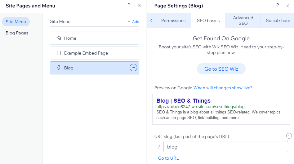 Hier zijn de stappen om de URL of SEO-slug in Wix te bewerken: