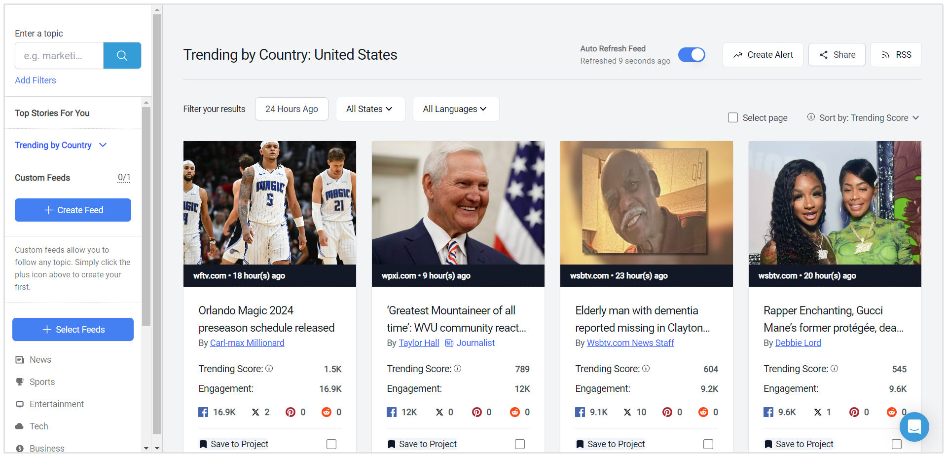 1. BuzzSumo Trending: Użyj filtrów w tym narzędziu, aby dowiedzieć się, co jest na czasie w Twojej branży lub rynku.
