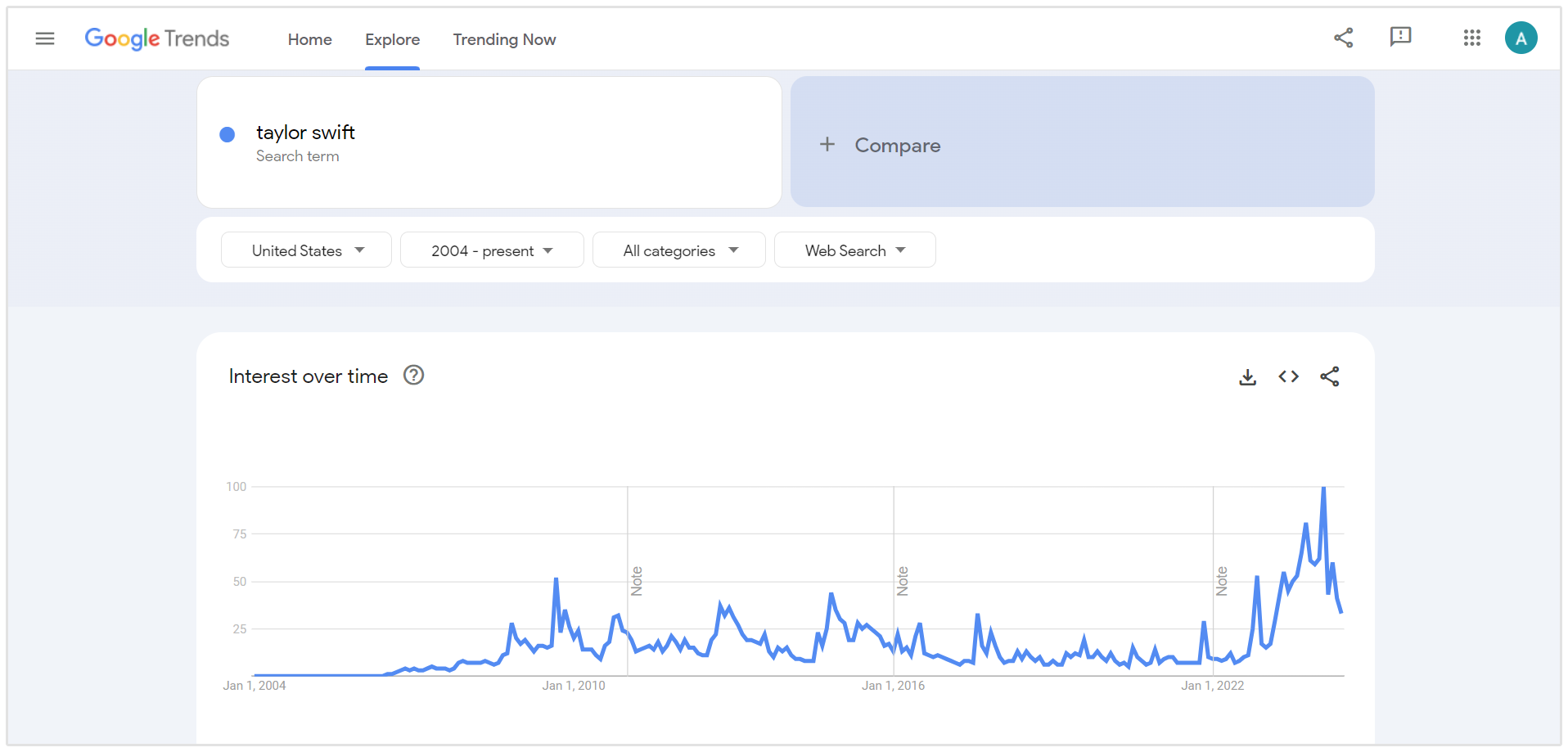 2. Google Trends: Google pozwala zobaczyć, jaką objętość wyszukiwań generują różne tematy. To świetne narzędzie do weryfikacji przeczucia lub tematu, który odkryłeś za pomocą BuzzSumo.