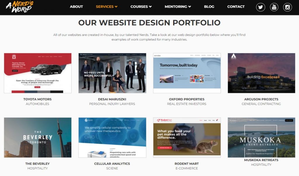 A maioria das agências de design web e marketing faz isso por meio de uma seção de “Portfólio” em seu site.