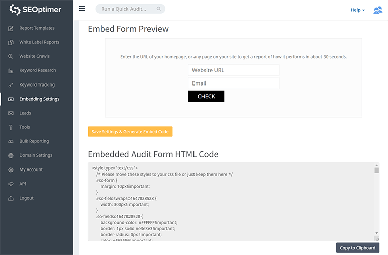 If you run into any issues with your embed form installation, just hit the live chat button in SEOptimer - we'd be more than happy to help!