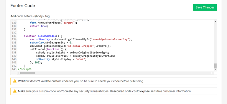 Switch back to SEOptimer and finally we want the last section which is the JavaScript section which starts with <script> and ends on the last line with </script>. Select this code with your mouse, then copy it (Ctrl + C / Command + C). Then switch back to Webflow.