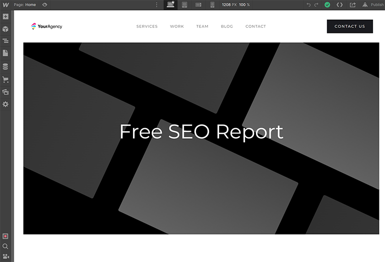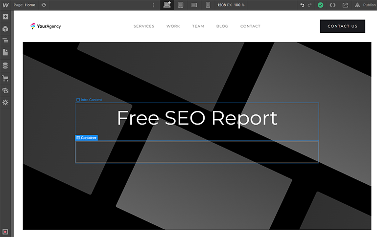For the purposes of this guide, I have created a simple homepage with a big feature container and a middle and centre-aligned heading "Free SEO Report". I want to now embed the audit form directly under the heading: