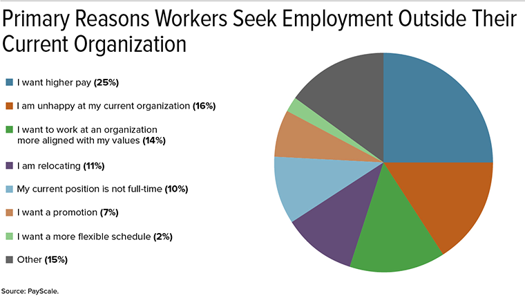 Thankfully there is better visibility recently to help us find the average SEO marketing salary. According to US research from PayScale, pay (or lack thereof) is still the #1 reason why workers quit their jobs. In reality, pay alone is seldomly the only reason. There are usually several factors responsible, but it's still significant that a quarter of all people planning to quit their current role cite pay as the #1 reason.